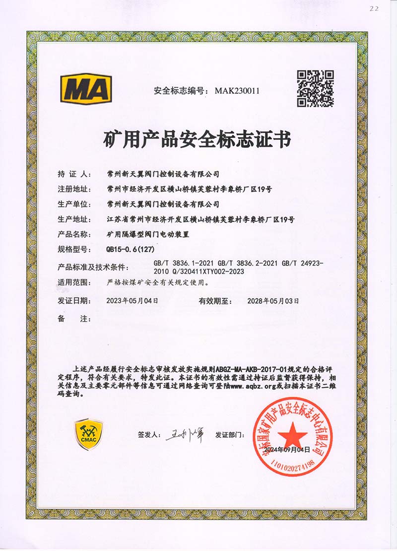 礦用產品安全標志證書QB25-0.6(127)