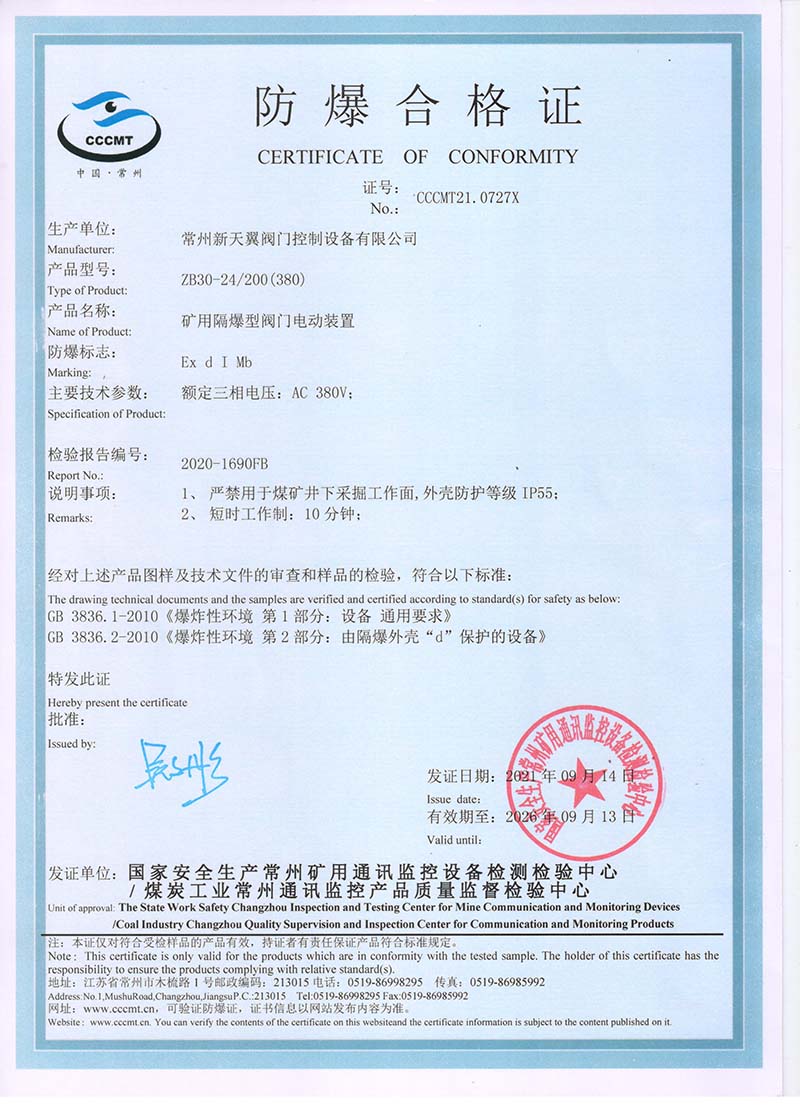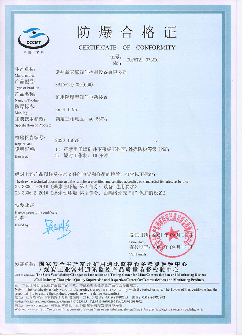 ZB20-24 200(660) 防爆合格證